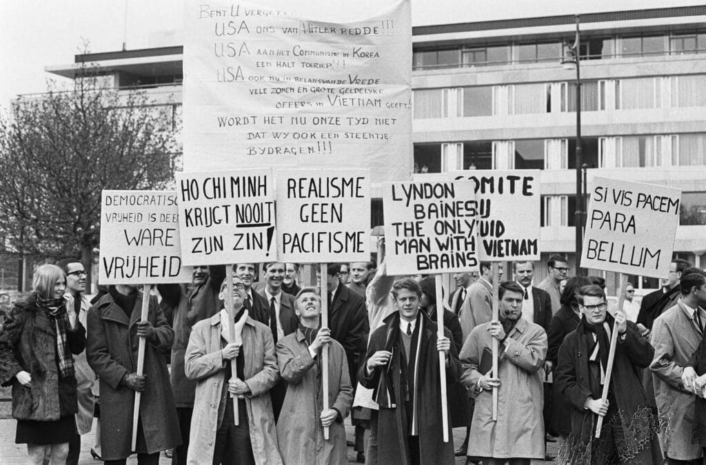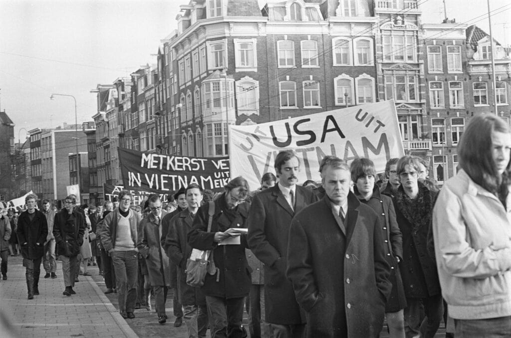 ‘Net zoals bij de huidige Gaza-oorlog waren er eerst kleine demonstraties, die de politie vaak met geweld opbrak. In 1967 vonden enkele gematigde massademonstraties met tienduizenden mensen plaats. Veel mensen voelden zich moreel-ethisch verbonden met het conflict. Er was vooral veel woede over de bruutheid van de Amerikanen. Net als nu met Israël leek er geen rode lijn te zijn voor de Verenigde Staten en leek het alsof de Nederlandse regering de Amerikanen ongeacht hun acties zou blijven steunen.’