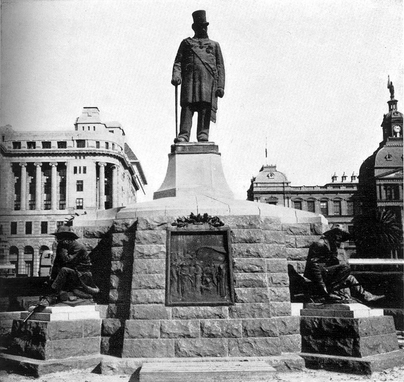 Het originele standbeeld van Paul Kruger, president van de Zuid-Afrikaansche Republiek (Transvaal) van 1883 tot 1900, is vijf jaar voor het uitbreken van de Boerenoorlog ontworpen door de Nederlander Anton van Wouw. Opdrachtgever was de industrieel Sammy Marks, die wilde dat het monument voor de president midden op het centrale Kerkplein van de Transvaalse hoofdstad Pretoria kwam. Maar terwijl Van Wouw in Europa het beeld liet gieten, brak de oorlog met Groot-Brittannië uit. Het standbeeld werd nog wel verscheept naar de havenstad Lourenço Marques (Maputo) in Portugees Mozambique, maar daar eindigde de reis voorlopig. De Boeren verloren de oorlog en Kruger moest zelf vluchten naar Europa, waar hij in 1904 overleed.